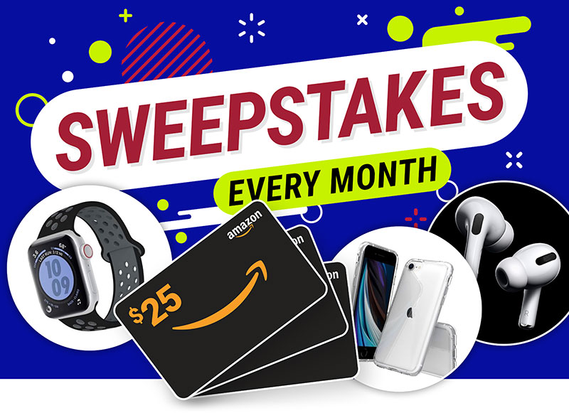 Each month employees are eligible to enter sweepstakes for a chance to win employee-only prizes. Prizes include brand-name gift cards, Bluetooth headsets, Apple accessories, and more!
